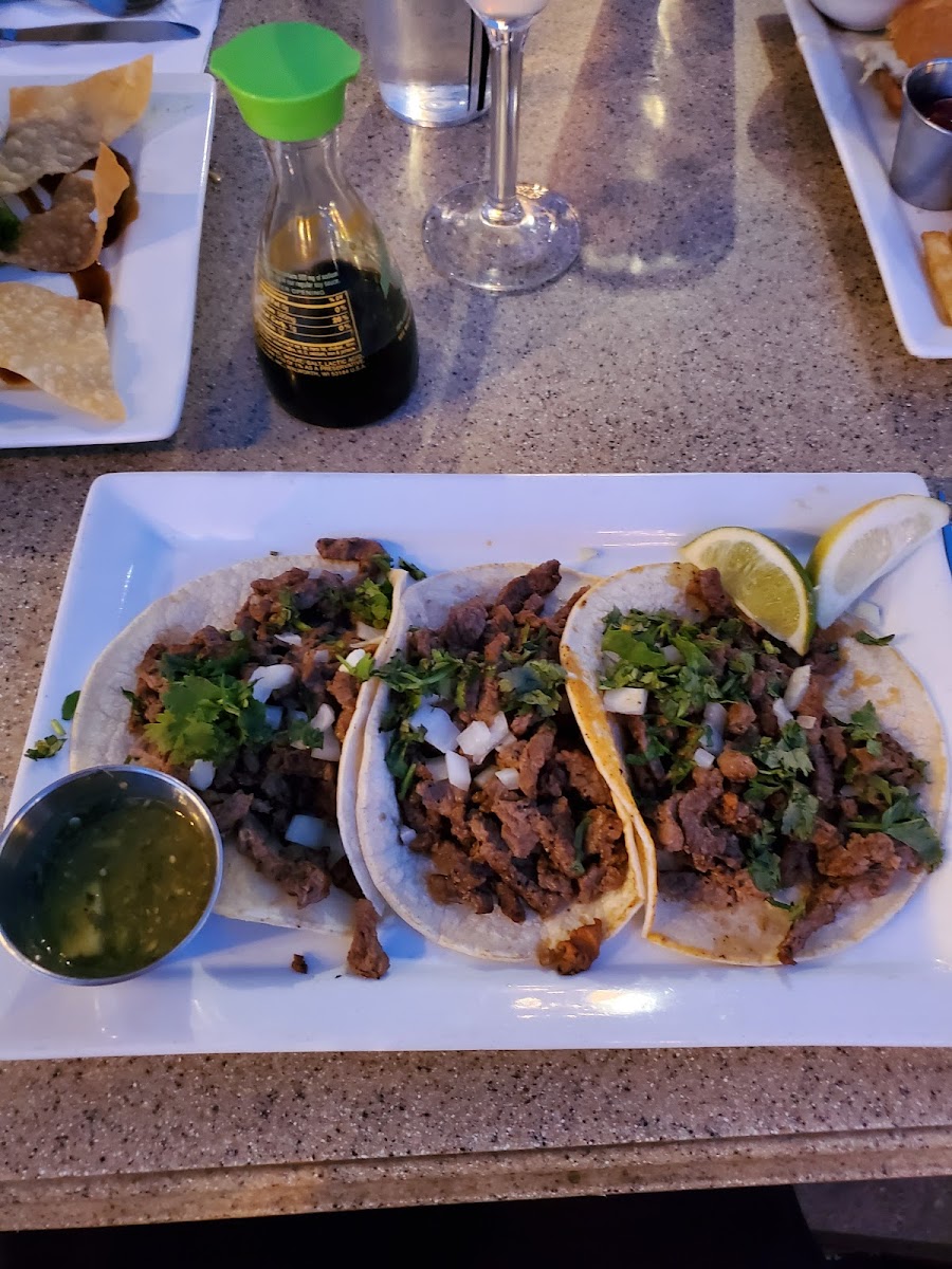 Came on a over 100 degree day to have an outside birthday and goodbye soiree and sat outside with the mister fans. The waitress was very fast and attentive and i was happy i was able to be a late add on to the table. I highly recommend the pineapple drink and fish tacos. The steak tacos were tough and tender and dry. I just hated the fact that those black garbage flies would constantly sit on my food and my drink it kinda turned me off from eating there outside again.